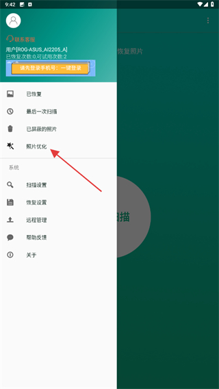 2、在左側(cè)彈出的菜單欄中,點擊照片優(yōu)化的功能按鈕。