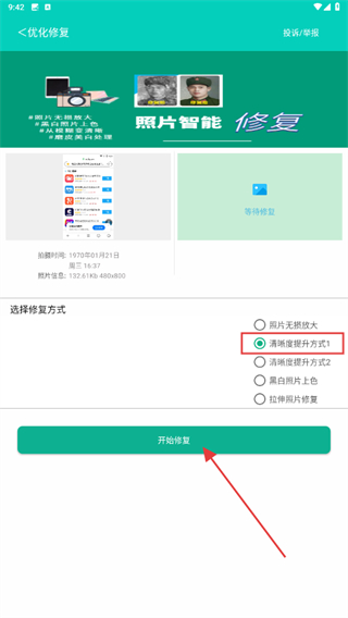4、添加成功后,再選擇修復方式,選擇后再點擊開始修復的按鈕即可。