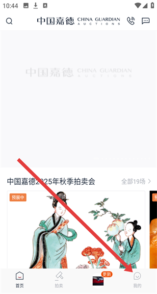 1、點擊“溫馨提示”彈窗的“同意并繼續(xù)”,進(jìn)入中國嘉德APP主界面。