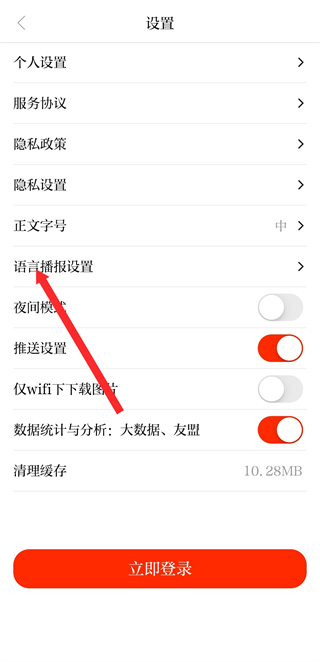 3、在設置的界面里,點擊語音播報設置,進入語音播報參數(shù)調(diào)整頁面。