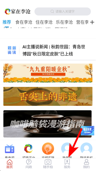 1、打開家在李滄APP首頁,點(diǎn)擊底部服務(wù),進(jìn)入便民服務(wù)頁面。