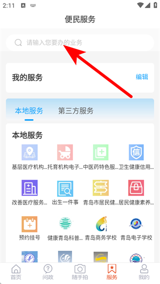 2、在便民服務(wù)頁面的搜索欄,輸入需要搜索的詞,進(jìn)行服務(wù)的搜索。
