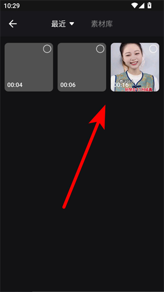 2.進(jìn)入選擇素材界面,選擇需要編輯的視頻素材。
