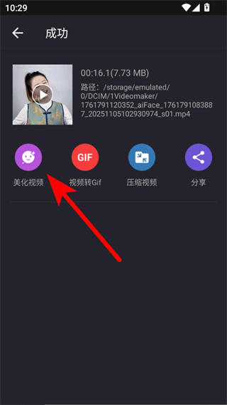 4、裁剪成功后,點擊美化視頻,可對視頻進(jìn)行進(jìn)一步美化操作。
