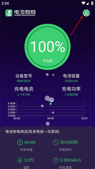 1、打開電池狗狗APP主界面,點(diǎn)擊右上角個(gè)人頭像圖標(biāo)。