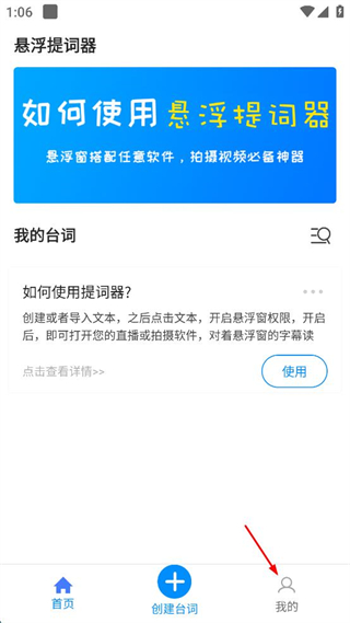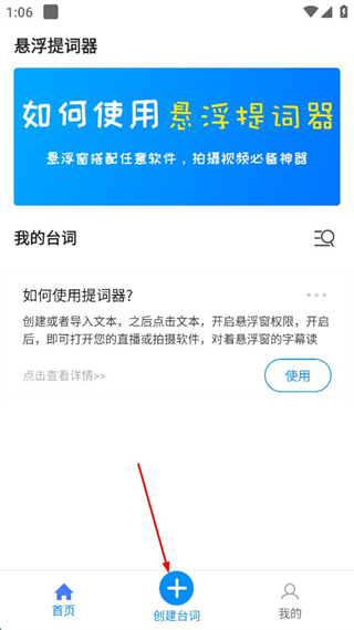 4、登錄后返回首頁(yè),點(diǎn)擊“創(chuàng)建臺(tái)詞”按鈕,開始創(chuàng)建臺(tái)詞。