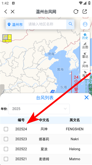 3、在臺風列表中,選擇想要查看的臺風,點擊進入其路徑詳情頁面。