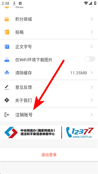 2、在個人設(shè)置頁面中,點擊注銷賬號選項,進入注銷須知頁面。