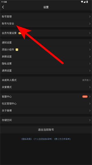 3、在設(shè)置頁面點(diǎn)擊賬號與安全,進(jìn)入賬號與安全頁面。