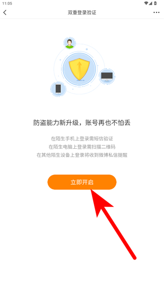 4、在賬號與安全頁面點(diǎn)擊雙重登錄驗(yàn)證,進(jìn)入雙重登錄驗(yàn)證頁面后點(diǎn)擊立即開啟,即可開啟微博的雙重驗(yàn)證功能。