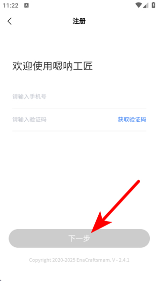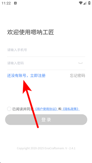 1、打開嗯吶工匠APP,在登錄界面點(diǎn)擊還沒有賬號(hào),立即注冊(cè)。