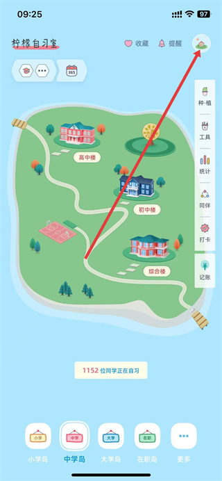 1、打開(kāi)檸檬自習(xí)室app,點(diǎn)擊右上角的頭像圖標(biāo)。