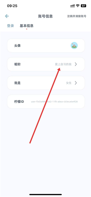 4、點(diǎn)擊昵稱選項(xiàng)右側(cè)的箭頭,即可進(jìn)行修改昵稱。