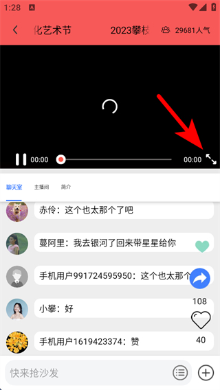 4、在直播播放界面,可點擊屏幕右下角箭頭圖標放大進行觀看。