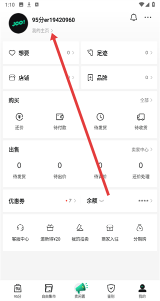 1、在95分APP首頁(yè)點(diǎn)擊右下角“我的”,進(jìn)入個(gè)人中心頁(yè)面。