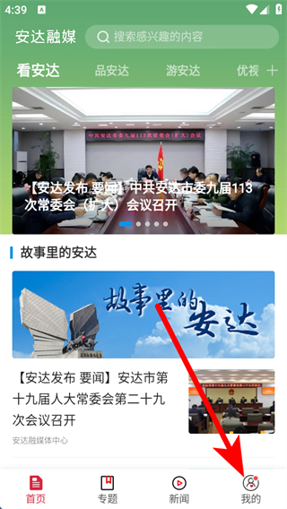 1、打開安達(dá)融媒APP首頁,點擊底部我的,進入個人板塊頁面。