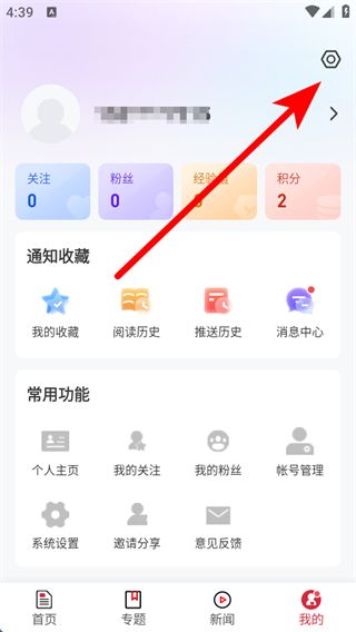 2、在個人板塊頁面,點擊右上角的設(shè)置按鈕,進入設(shè)置界面。