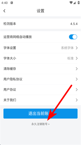 3、在設(shè)置界面中,點擊永久注銷賬號,進入注銷須知操作頁面。