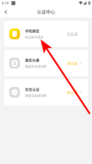 2、在認(rèn)證中心頁面中找到手機(jī)綁定選項(xiàng)并點(diǎn)擊,進(jìn)入手機(jī)認(rèn)證頁面。