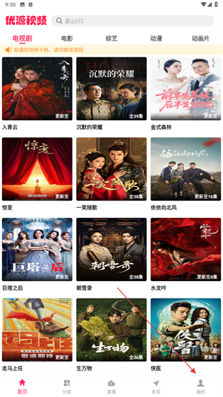 1、啟動優(yōu)源視頻的應(yīng)用,進入首頁點擊右下角我的圖標。