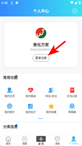 2、在個(gè)人中心點(diǎn)擊登錄注冊(cè),進(jìn)入登錄注冊(cè)選擇的界面。