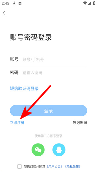 3、選擇賬號(hào)密碼登錄,進(jìn)入賬號(hào)密碼登錄的頁面。