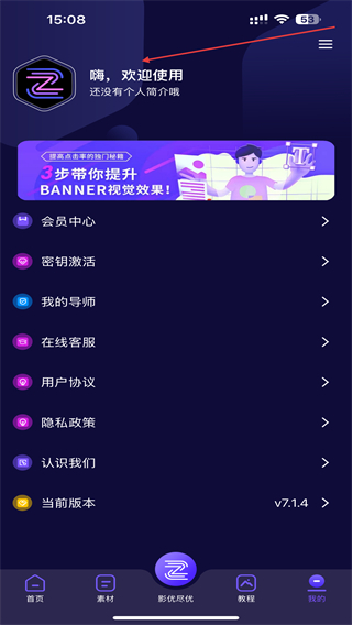 2、進(jìn)入我的頁面內(nèi),點(diǎn)擊嗨,歡迎使用的區(qū)域。
