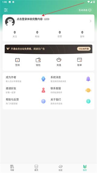 2、在個人主頁內(nèi),點擊上方登錄體驗完整內(nèi)容。