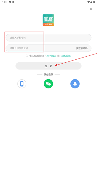 3、輸入手機號碼、驗證碼,再點登錄按鈕即可完成。