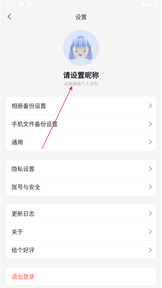 2、在設(shè)置頁面中,點擊請設(shè)置昵稱區(qū)域,進入個人資料。