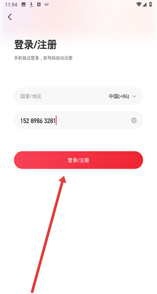 3、在進(jìn)入到登錄注冊(cè)頁(yè)面中時(shí),可以點(diǎn)擊輸入框填寫(xiě)手機(jī)號(hào)碼后,點(diǎn)擊按鈕進(jìn)行登錄。