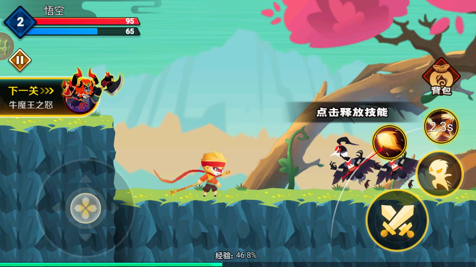 暴揍小精靈游戲畫面精美,擁有卡通可愛的人物形象而且操作簡單,輕松上手讓玩家在其中享受到更多的樂趣!游戲中玩家需要扮演孫悟空的角色一路斬妖除魔,擊敗路上所有的敵人完成挑戰(zhàn)即可。游戲中可以升級自己的技能和裝備來提升戰(zhàn)斗力,這樣就能更快速地?fù)魯∷袛橙耍∮螒虺錆M了挑戰(zhàn)性,有喜歡的玩家快來下載吧!