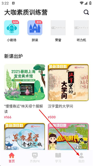 2、進(jìn)入小劇場(chǎng)頁(yè)面后,點(diǎn)擊劇場(chǎng)劇本選項(xiàng)卡,選擇想要錄音的課程。