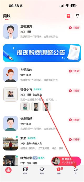 1、打開趣約會(huì)APP,點(diǎn)擊右下角我,進(jìn)入個(gè)人頁面。