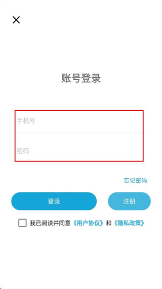 3、在賬號(hào)登錄頁(yè)面輸入手機(jī)號(hào)和密碼。