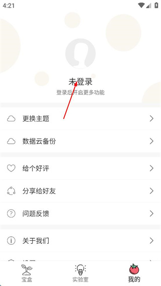 2、在個(gè)人頁(yè)面點(diǎn)擊未登錄,進(jìn)入賬號(hào)登錄頁(yè)面。