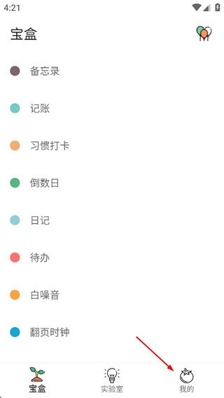 1、打開(kāi)寶盒APP,點(diǎn)擊右下角我的,進(jìn)入個(gè)人頁(yè)面。