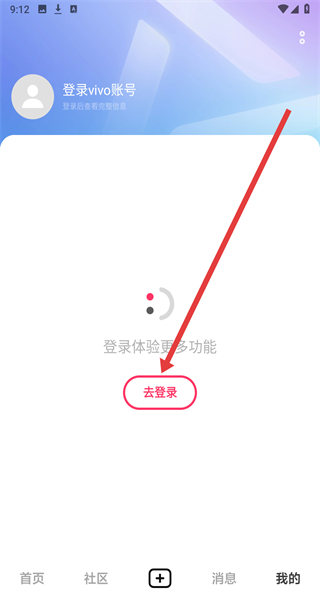 2、在個人中心頁面點擊“去登錄”,進入vivo賬號登錄界面。