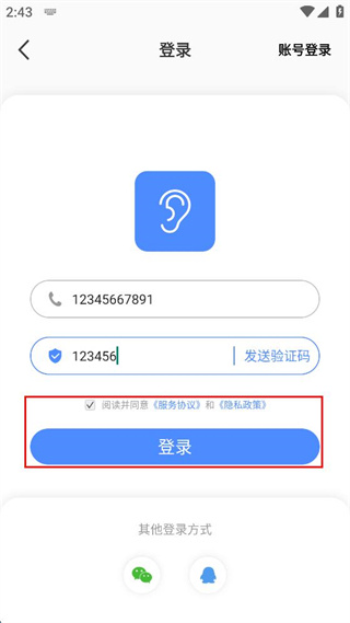 4、勾選閱讀并同意服務(wù)協(xié)議和隱私政策,點擊登錄按鈕完成登錄操作。
