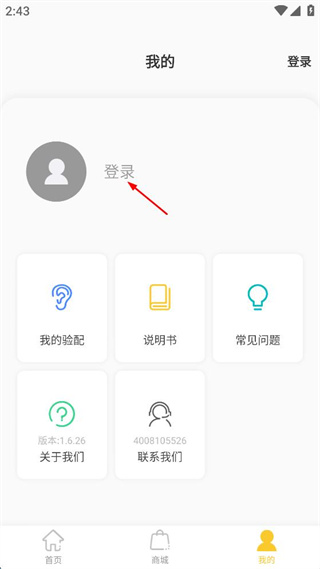 2、在我的頁面點擊登錄選項,進入登錄頁面。