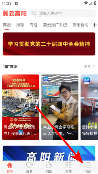 1、打開冀云高陽APP,點(diǎn)擊底部導(dǎo)航欄的我的,進(jìn)入個人頁面。