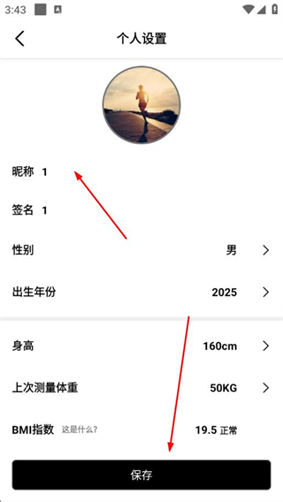 3、在個人設置頁面點擊昵稱,點擊保存。