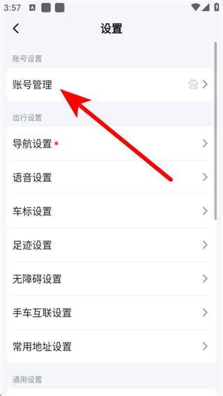 2、在設(shè)置頁面點擊賬號管理,進入賬號管理頁面。