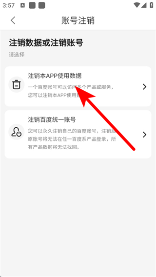 4、在賬號注銷頁面點擊注銷本APP使用數(shù)據(jù),即可注銷百度順風(fēng)車賬號。