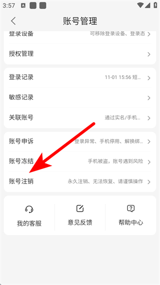 3、在賬號管理頁面點擊賬號注銷,進入賬號注銷頁面。