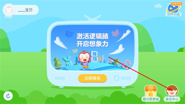 1、打開猿編程啟蒙APP,點擊右下角家長中心。