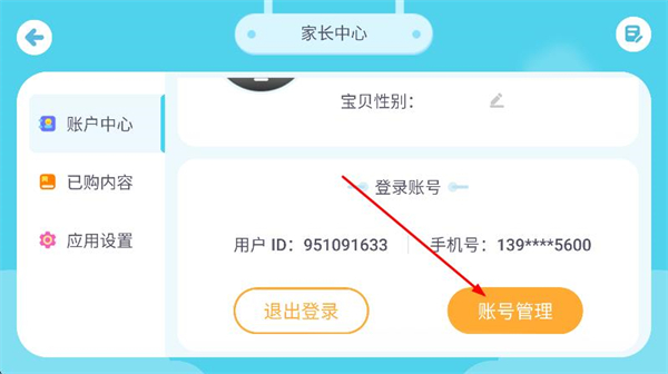 2、在家長中心頁面,點擊下方賬號管理選項。
