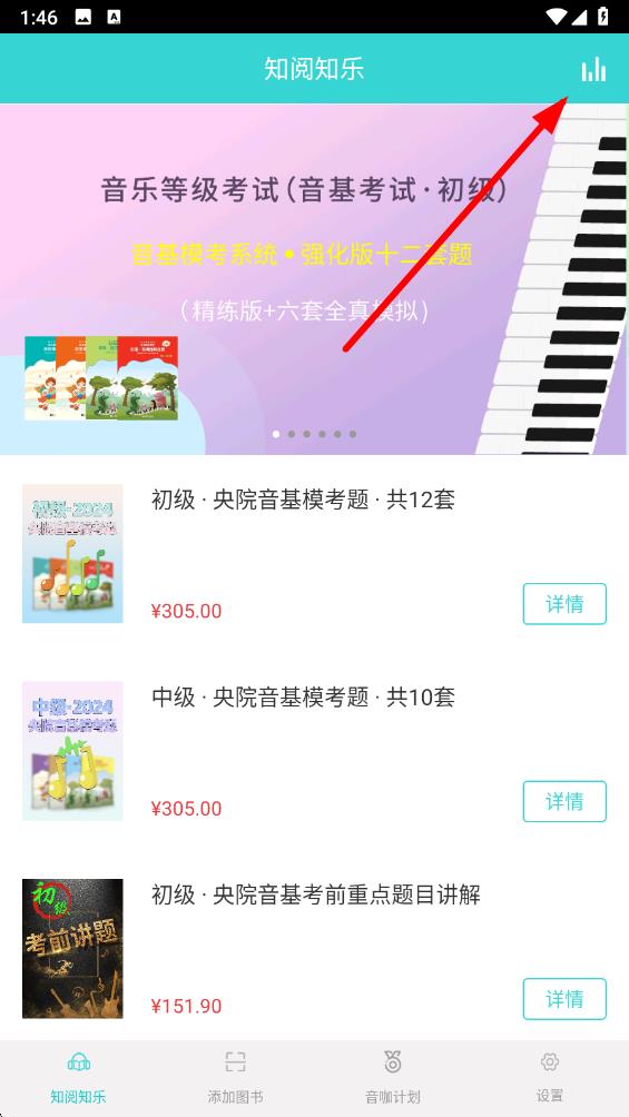 1、打開知閱知樂app,點(diǎn)擊首頁(yè)右上角的音樂播放圖標(biāo),進(jìn)入音樂播放界面。