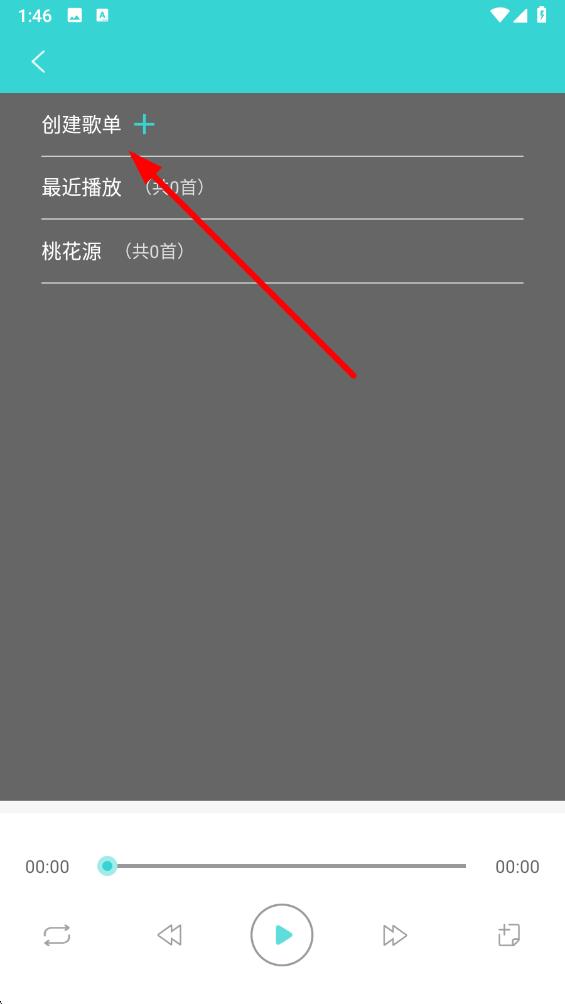 2、在音樂播放界面中,找到并點(diǎn)擊創(chuàng)建歌單選項(xiàng)。
