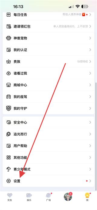 2、在個(gè)人頁面點(diǎn)擊設(shè)置,進(jìn)入設(shè)置頁面。